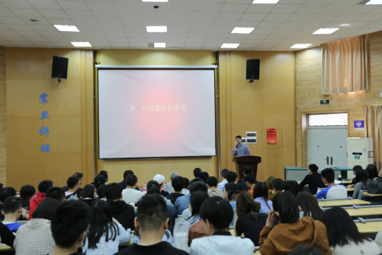 公共管理学院党委副书记刘国华讲话。他指出,我们共同生活在地大这个大家庭中,学术卓越是我们共同的追求,希望同学们在未来能够更严格地要求自己,实现自己的发展。