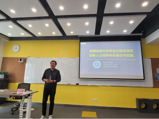 副院长关庆锋以“地理信息科学专业立体协同式创新人才培养体系建设与实践”为题进行了汇报交流。他从GIS专业人才的需求和创新能力培养的重要性入手,介绍了草榴社区