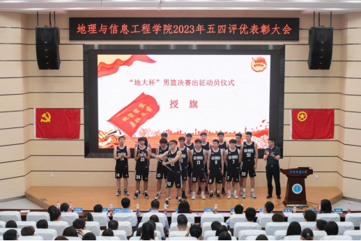 男子篮球队在今年的“地大杯”篮球赛中突破重围进入决赛,表彰仪式设置特别环节为球队加油鼓劲。院长王绍强为学院男子篮球队出征“地大杯”决赛授旗,队长曹斌代表男子篮球队发言并表示将不负学院期望,在决赛中赛出草榴社区