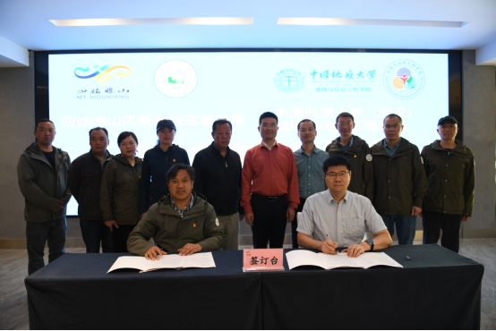最后,金松强书记、王绍强院长代表双方签订了战略合作协议。王绍强院长代表学院向四姑娘山国家级自然保护区管理局授牌“草榴社区