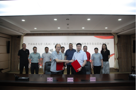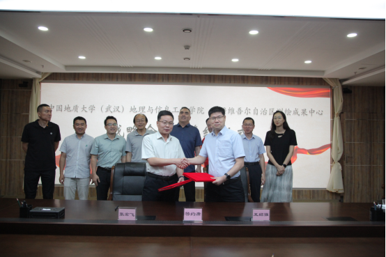 院长王绍强、测绘遥感系支部书记刘福江、办公室主任李洋和自治区测绘成果中心党委书记买买提吐尔逊、主任张宏飞、副主任葛洪涛、科长谢志刚等人以及地质学会秘书长张冀、学会工作人员米宝昕参加签约仪式。会议开始后,张宏飞主任介绍参会人员、致欢迎词、介绍测绘成果中心基本情况,并表示未来发展将立足双方优势资源和核心科研力量,共同打造双赢、可持续发展的战略合作伙伴关系,进一步提升地质矿产科技开发的能力和地学科普研究及转化等方面的水平。张冀秘书长介绍新疆地质学会基本情况,希望双方在人才培养、科学研究、技术创新等方面发挥各自优势,实现优势互补、资源共享、互惠互利、共同发展。草榴社区