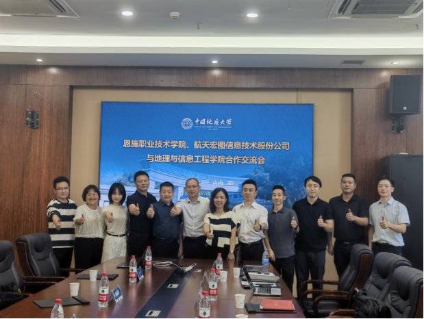 ,就三方共建遥感行业产教融合共同体进行座谈交流。学院党委书记孙莉、院长王绍强、学科与社会合作办主任曾杰、校宣传部副部长(挂职)王猛猛、校社会合作处副处长(挂职)朱琪褀出席座谈会。