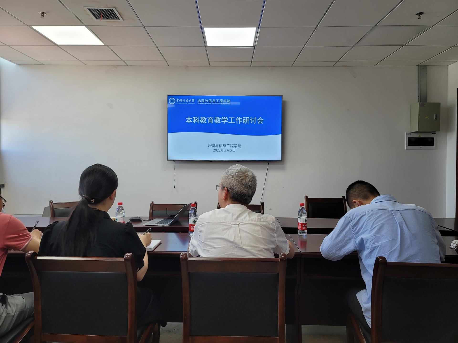 未来城校区科教八楼577会议室召开本科教育教学工作研讨会。会议通过线上线下相结合的方式进行。学院党委书记许德华,院长王绍强,副院长宋小青、王伦澈,各系书记、主任及班子成员,教学办、学工办和锐思新媒体学生骨干参会。