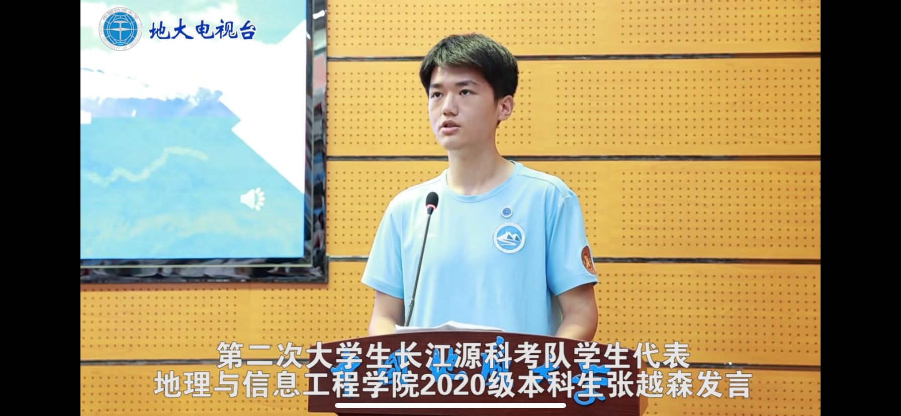 地理信息科学专业2020级本科生张越森通过层层选拔,成为了第二次大学生长江源科考地理组的一员。作为学生发言代表,在科考出征仪式上,他激动地说:“科考队训练的三个多月里,我不仅收获了强健的体魄和专业技能,更增强了专业报国的认知和意识。每天十公里跑、400米间歇、爬楼、仰卧两头起,我们撒下的每一滴汗水,迈出的每一个步伐,都是为了践行习近平总书记倡导的‘长江大保护’理念。”