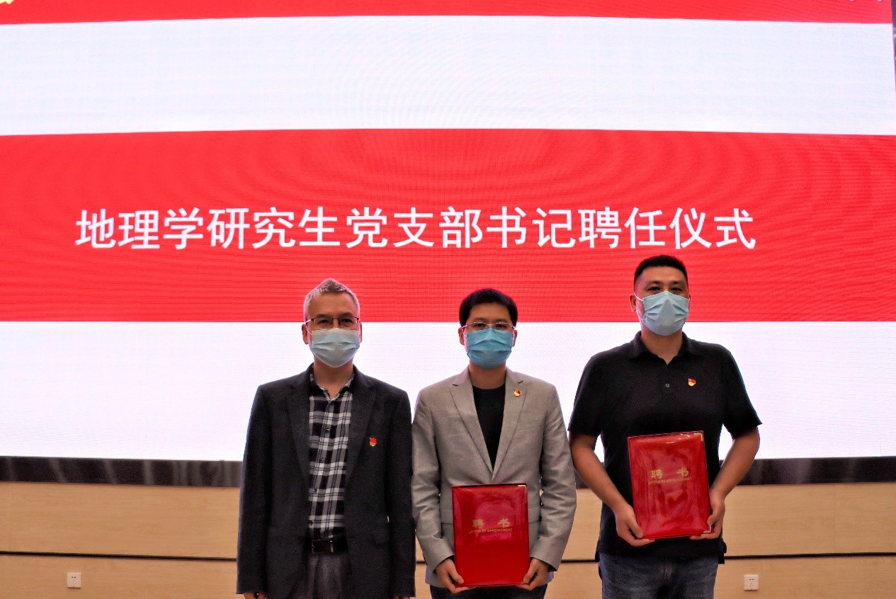 武彦斌同志宣读学院党委关于地理学科研究生党支部设置调整的决定,并对教育部和学校关于党建“双创”工作相关文件进行解读。