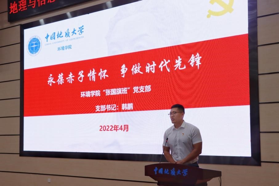 地球科学学院地质学国家基地班本科生党支部副书记胡楚玉、环境学院“张国旗班”党支部书记韩鹏、体育学院学生联合党支部书记綦霄分别以“一心三环领发展,党建专业共促进”、“永葆赤子情怀,争做时代先锋”、“体育学院学生联合党支部党建工作分享”为题作分享,介绍了各自党支部样板支部建设的情况,分享了他们的好经验、好做法。