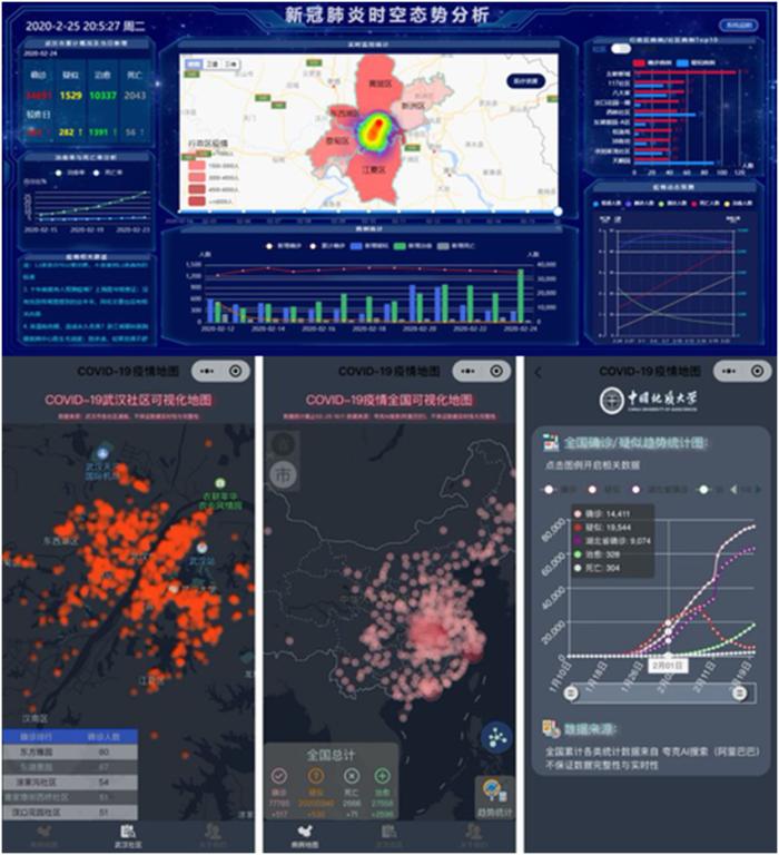 武汉市新型冠状病毒肺炎疫情态势分析系统(包括桌面仪表盘系统和微信小程序,由郑坤、杨乃、姚尧、梁迅等老师及研究生共同开发)