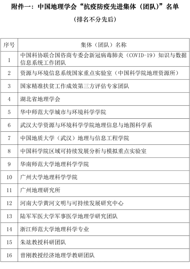 据悉,本次地理信息学会“抗疫防疫先进集体和个人“的评选是为了进一步贯彻落实习近平总书记关于防控新型冠状病毒感染肺炎疫情的重要系列指示精神和中央应对新型冠状病毒感染肺炎疫情工作领导小组系列会议精神,加强对抗击疫情典型人物和团队的宣传报道,凝聚共克时艰正能量。共计评选出抗疫防疫先进集体16个,先进地理工作者24人。具体名单附后。
