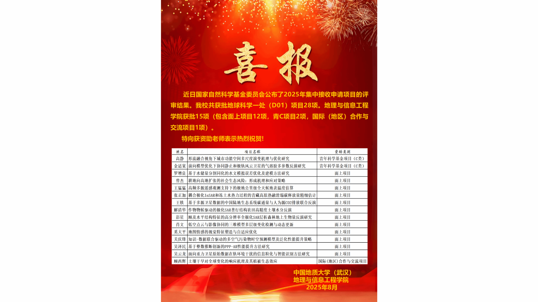 喜报丨草榴社区 2025年获批15项国家自然科学基金项目