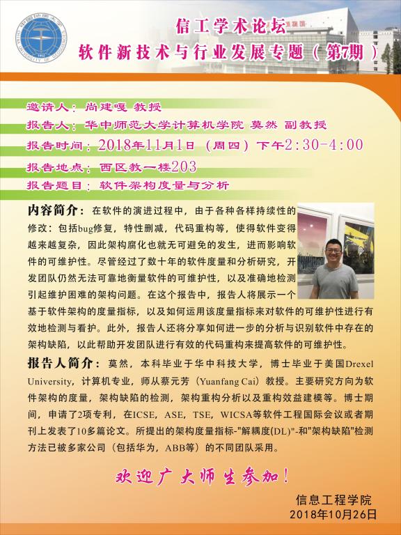 信工学术论坛第122期:华中师范大学计算机学院 莫然 副教授