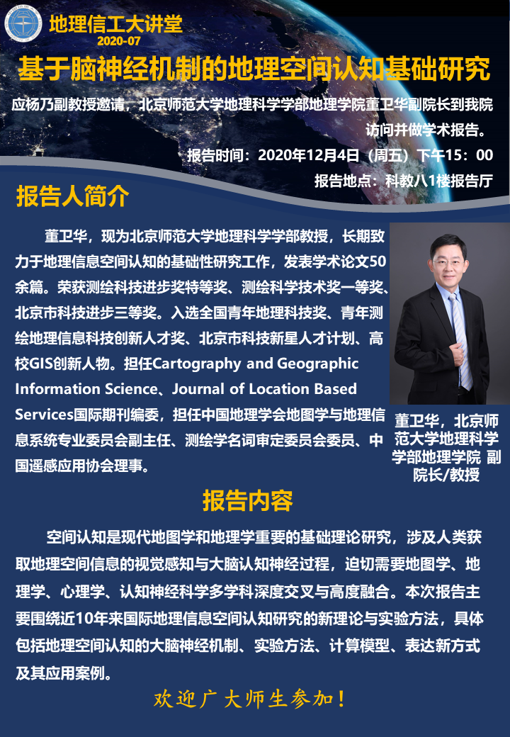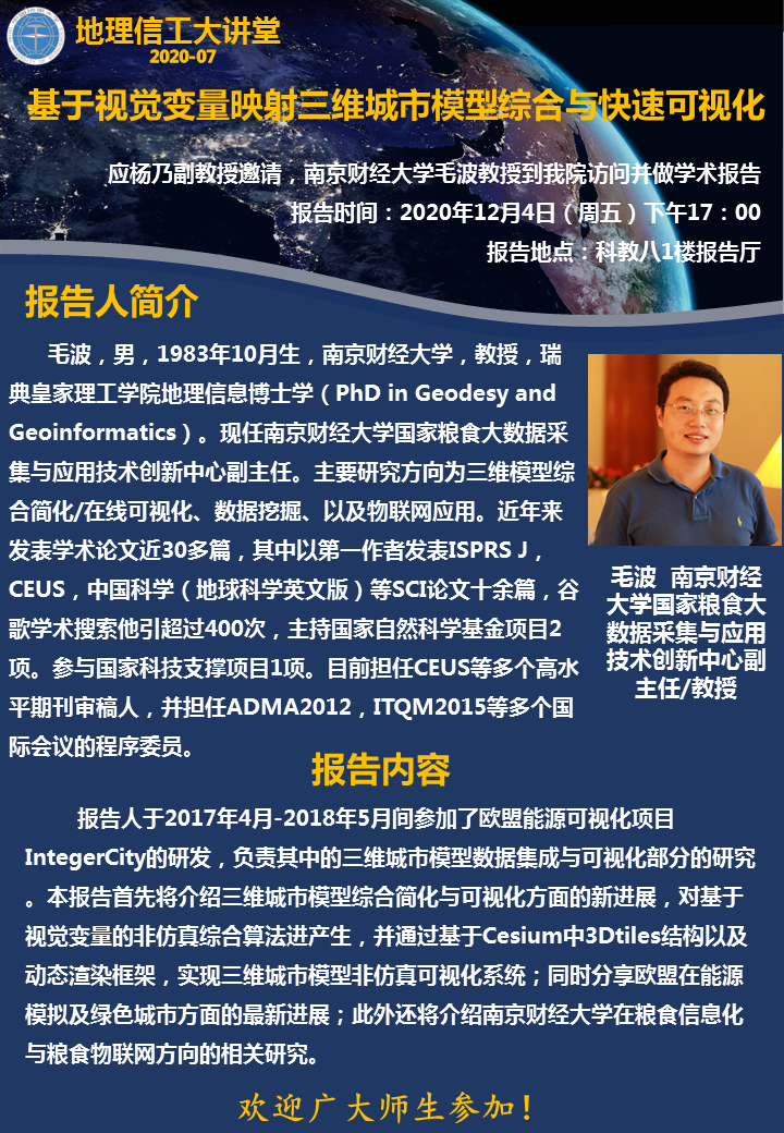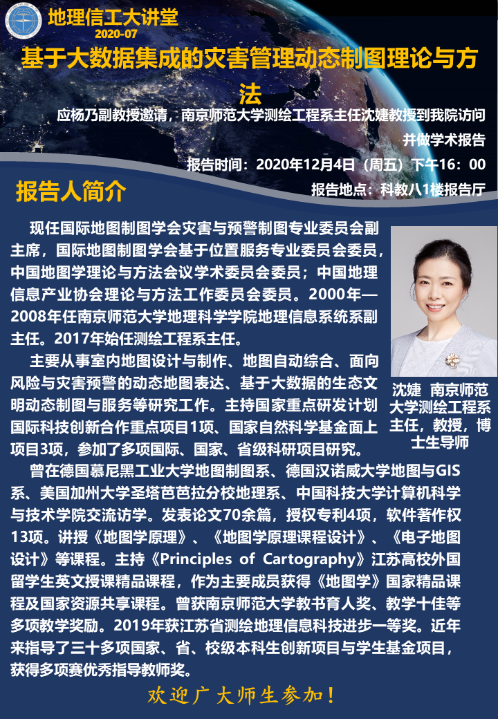 草榴社区 草榴社区 于2020年12月4日下午15点至18点主办地理空间可视化论坛。本论坛立足于时空大数据可视化需求,围绕地理空间认知、灾害动态制图、三维城市模型综合等前沿科学问题,邀请北京师范大学、南京师范大学、南京财经大学3位知名学者交流学术进展和科研成果,以扩大草榴社区 在国内地图学领域、地理信息科学领域的交流与合作。