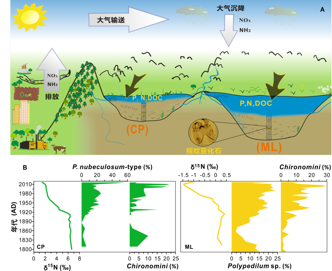 ·近两百年来气候变暖和大气沉降对亚热带山地湖泊的影响:来自摇蚊亚化石的证据