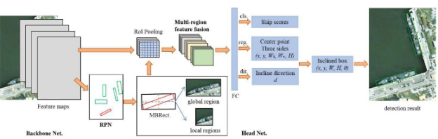 遥感图像中基于多任务学习和多区域特征融合的任意方向舰船检测
