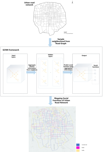 Hu, Sheng, Song Gao, Liang Wu, Yongyang Xu, Ziwei Zhang, Haifu Cui, and Xi Gong. "Urban function classification at road segment level using taxi trajectory data: A graph convolutional neural network approach." Computers, Environment and Urban Systems 87 (2021): 101619.