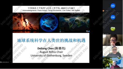 2023年1月30日,应王伦澈教授邀请,瑞典哥德堡大学陈德亮院士做客草榴社区 名家论坛(第2023-02期),以线上形式作题为“地球系统科学在人类世的挑战和机遇”的学术报告,受到广大师生的热烈欢迎。报告由副校长王力哲教授主持,线上与会人员900余人。