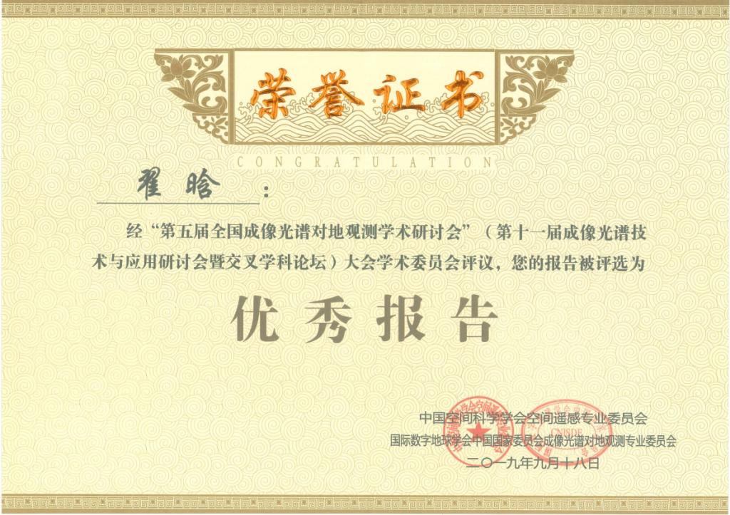 9月17日至18日,由“中国空间科学学会空间遥感专业委员会”和“国际数字地球学会中国国家委员会成像光谱对地观测专业委员会”联合举办的“第五届全国成像光谱对地观测学术研讨会”在石河子大学举行。草榴社区 翟晗的报告经学术委员会评议,被评选为优秀报告。