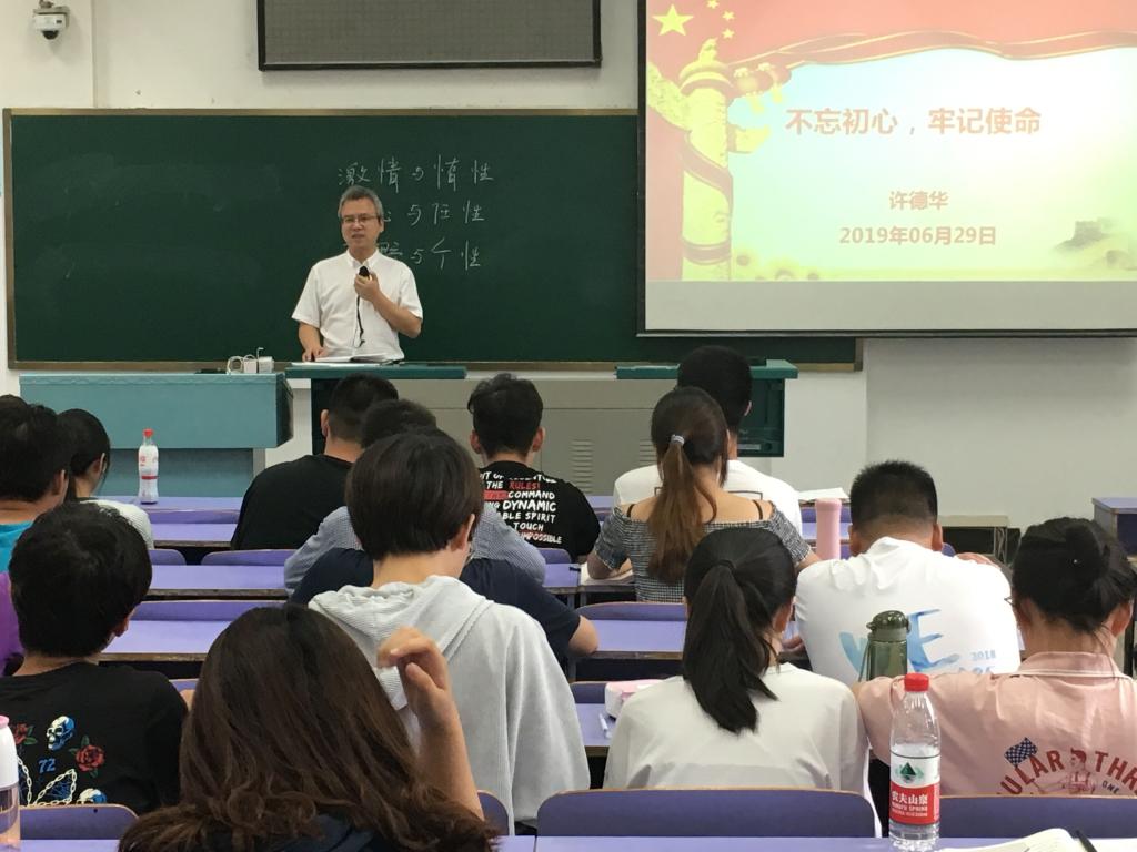 值“七一”建党98周年之际,草榴社区 党委书记许德华老师与学院新发展的70余名预备党员及团委新任学生干部共聚一堂,分享了一场以“不忘初心、牢记使命”为主题的生动党课,党课于2019629日下午3:00在教三301教室准时开讲。