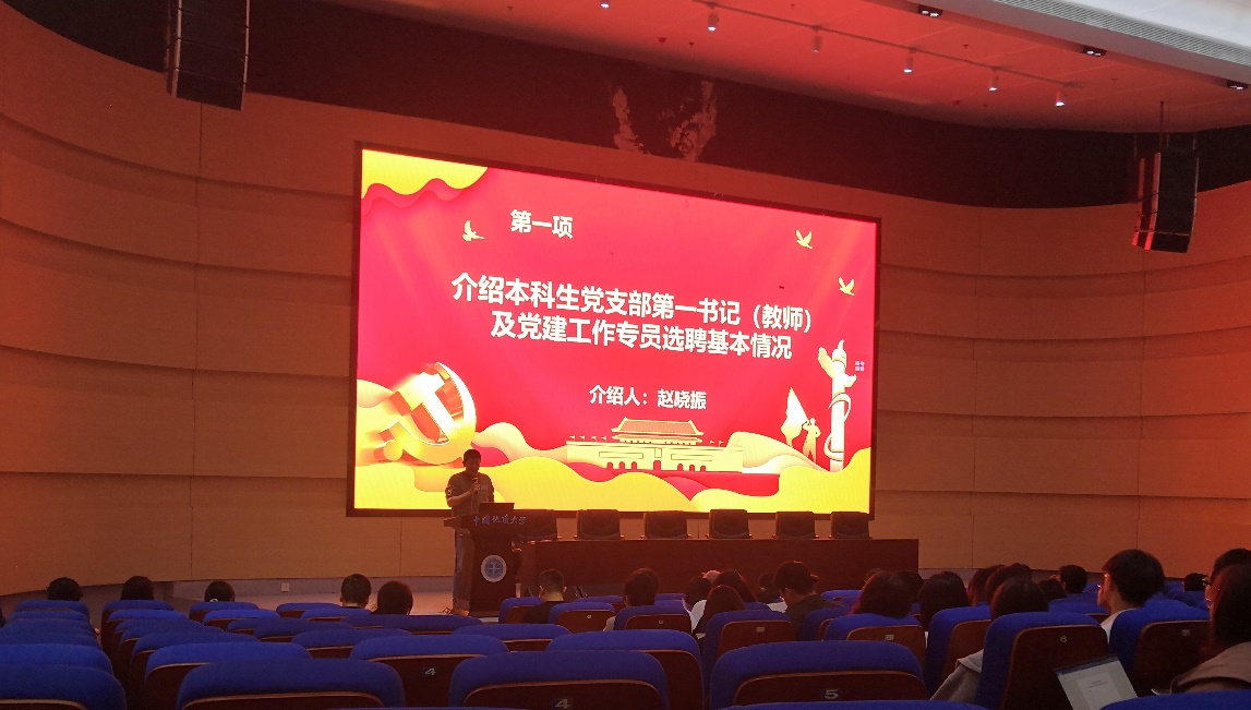 首先,由辅导员赵晓振老师介绍本科生党支部第一书记及党建工作专员选聘基本情况并宣读党委任命文件。学院党委书记许德华向担任学院本科生党支部第一书记的教师及担任党建工作专员的研究生颁发聘任证书。