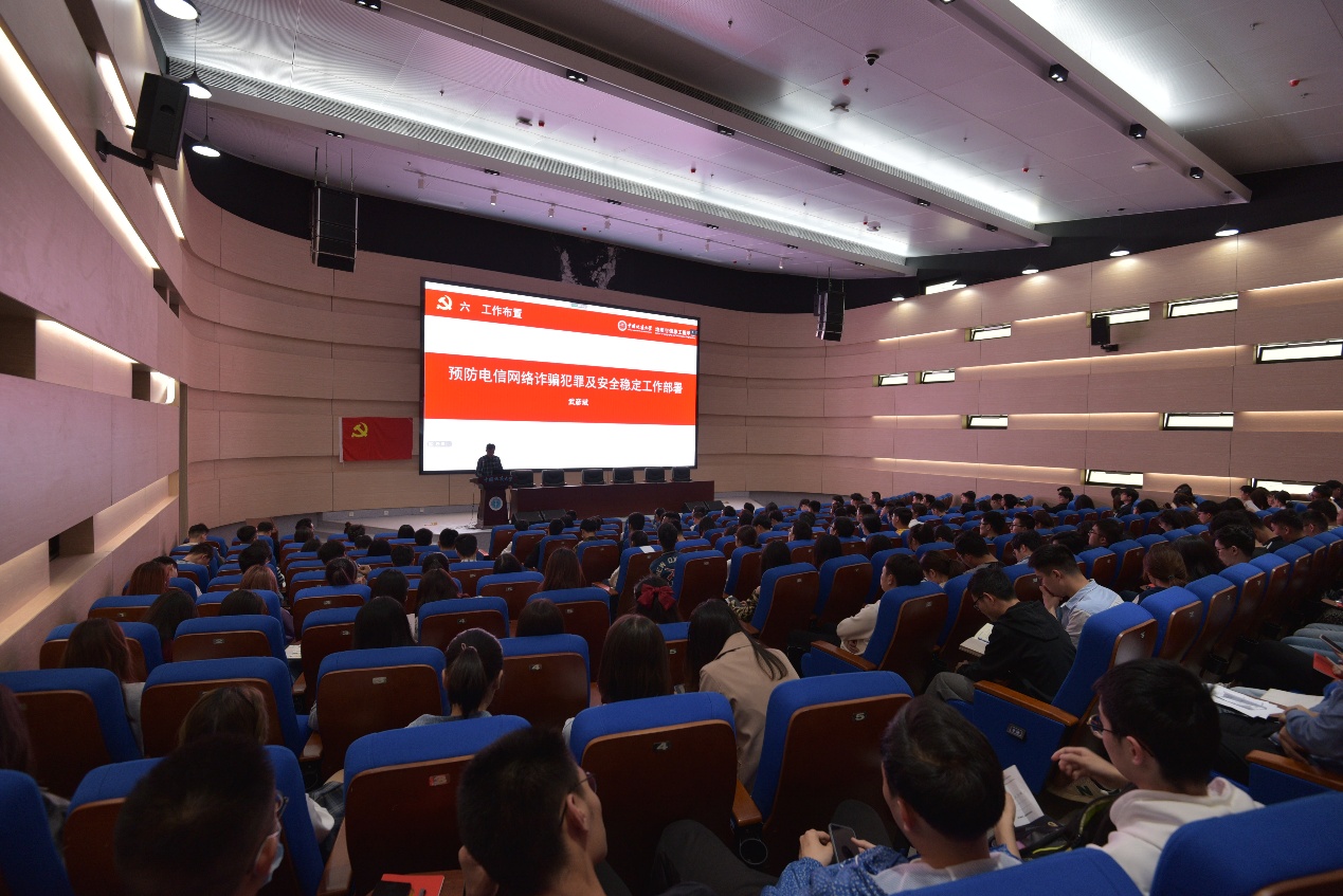 武彦斌通报了近期学生群体中发生的电信网络诈骗情况,并对学院预防电信网络诈骗犯罪工作进行部署。他要求,各党支部要根据网格化管理分工,小众化、精准化、高效率地完成安装国家反诈中心APP、关注光谷反诈小程序、及时学习《安全微课》等,并于510之前完成所有环节学习考试等相关内容。