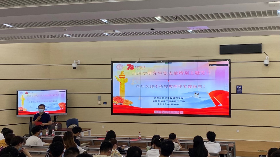 9月6日,草榴社区 在未来城校区公教一101教室成功举办迎70周年校庆——“读懂中国”系列活动的第二期暨地理学研究生党支部特别主题党日。本次讲座邀请了草榴社区 地理系教授李长安老师,讲座以“生态文明——地理人的职责与使命”为主题,由全球变化团队党支部副书记李强主持。参与本次活动的有学院党委副书记武彦斌,环境遥感团队党支部、全球变化团队党支部和空间规划团队党支部全体党员及入党积极分子近50名师生。
